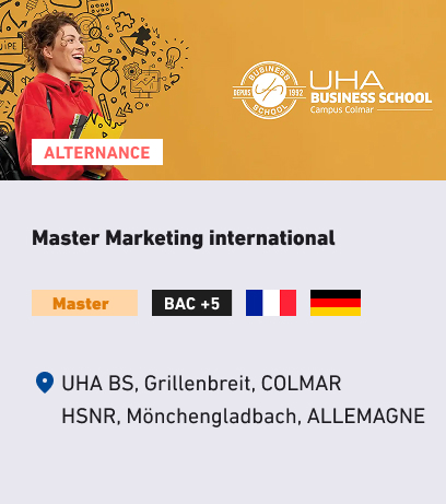 L’UHA Business School de l’Université de Haute-Alsace propose cinq parcours Master (Bac+5) :